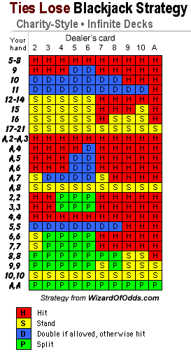 "चैरिटी ब्लैकजैक" के लिए मूल रणनीति क्या है, जहां डीलर टाई होने पर जीतता है?