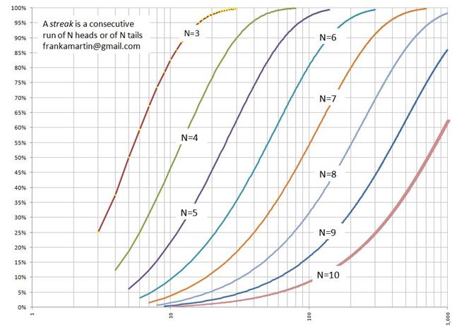 यह अजीब है कि आपने पूछा; एक अन्य पाठक ने मुझे अभी-अभी इस विषय पर एक अकादमिक पेपर भेजा है। इस पेपर में निम्नलिखित ग्राफ़ शामिल है, जो लगभग 62% संभावना दर्शाता है।