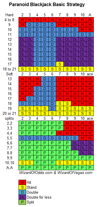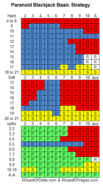 मैं मान रहा हूँ कि छह डेक हैं, डीलर सॉफ्ट 17 हिट करता है, स्प्लिट के बाद डबल करता है, सरेंडर करता है, और इक्कों को फिर से स्प्लिट करता है। अगर कम के लिए डबल की अनुमति नहीं है, तो मुझे खिलाड़ी को 4.9% की बढ़त मिलती है। यह सही रणनीति है। ज़ाहिर है, यह रणनीति कुछ खतरे की घंटी बजा सकती है।