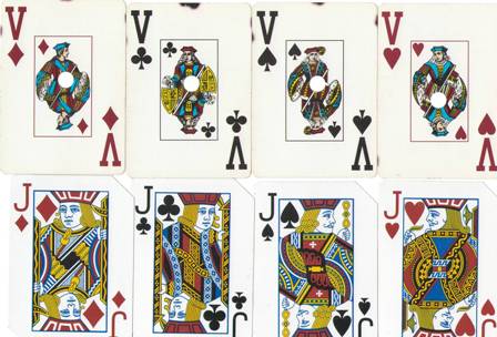 अंत में, मैं सबसे पहले यह सुझाव देना चाहूंगा कि हम अंग्रेजी ताश के पत्तों में J के स्थान पर V का प्रयोग करें, तथा उन्हें वैलेट कहें।
