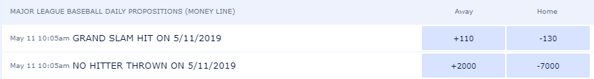 मैंने विलियम हिल स्पोर्ट्स बुक्स पर इस बात पर प्रस्ताव दांव देखे हैं कि किसी मेजर लीग बेसबॉल खेल में किसी खास दिन ग्रैंड स्लैम होगा या नहीं। खेले गए खेलों की संख्या के आधार पर इसकी उचित संभावना और रेखा क्या है?