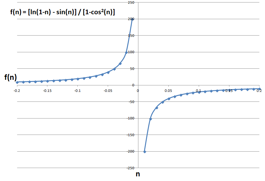 तो, f'(0)/g'(0) = -2/0 = -∞. इस प्रकार, मूल फलन की सीमा मौजूद नहीं है।