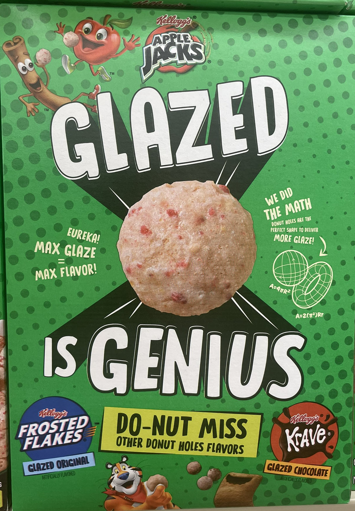 मूल बात यह है कि अगर आप ग्लेज़ को कम से कम करना चाहते हैं, न कि ज़्यादा, तो आपको ऐप्पल जैक्स या किसी और चीज़ का गोलाकार या डोनट होल के आकार का संस्करण लेना चाहिए। यही मेरा लक्ष्य होगा क्योंकि मुझे ये अनाज बहुत ज़्यादा मीठे लगते हैं और मैं कम ग्लेज़ पसंद करूँगा। मैं केलॉग्स के झूठे विज्ञापन की भी कड़ी आलोचना करता हूँ, जिसके लिए उन्हें अजीबोगरीब जादूगरनी जैसी शर्मिंदगी झेलनी पड़ती है।