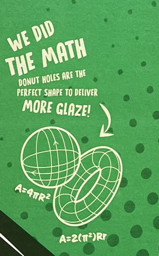 वे सही ढंग से बताते हैं कि एक गोले का सतही क्षेत्रफल, या जिसे वे संभवतः डोनट होल कहेंगे, 4πr 2 है, जहां r=त्रिज्या है।
