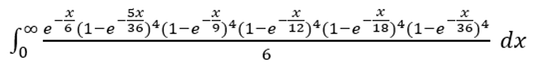 इसे टेक्स्ट फॉर्म में लिखने के लिए: exp(-x/6)*(1-exp(-5x/36))^4*(1-exp(-4x/36))^4*(1-exp(-3x/36))^4*(1-exp(-2x/36))^4*(1-exp(-1x/36))^4/6