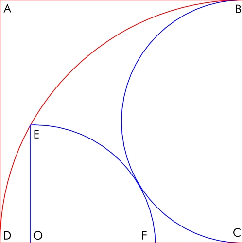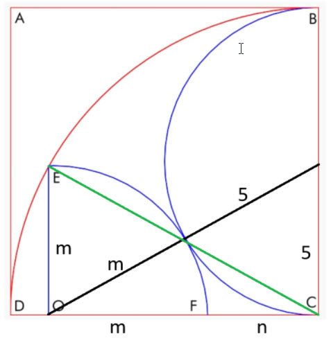 ABCD एक वर्ग है जिसकी भुजा की लंबाई 10 है। इसके अंदर एक अर्धवृत्त और एक चौथाई वृत्त अंकित है, जैसा कि निम्नलिखित चित्र में दिखाया गया है।