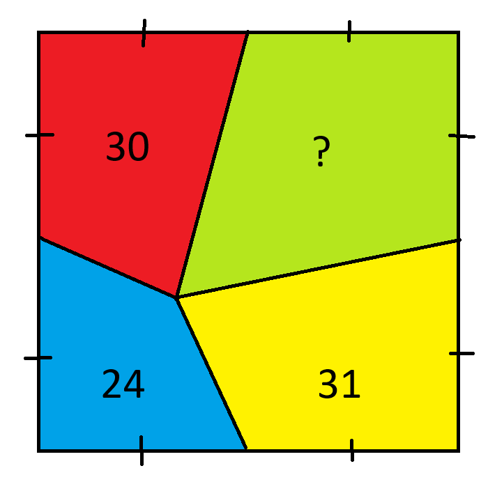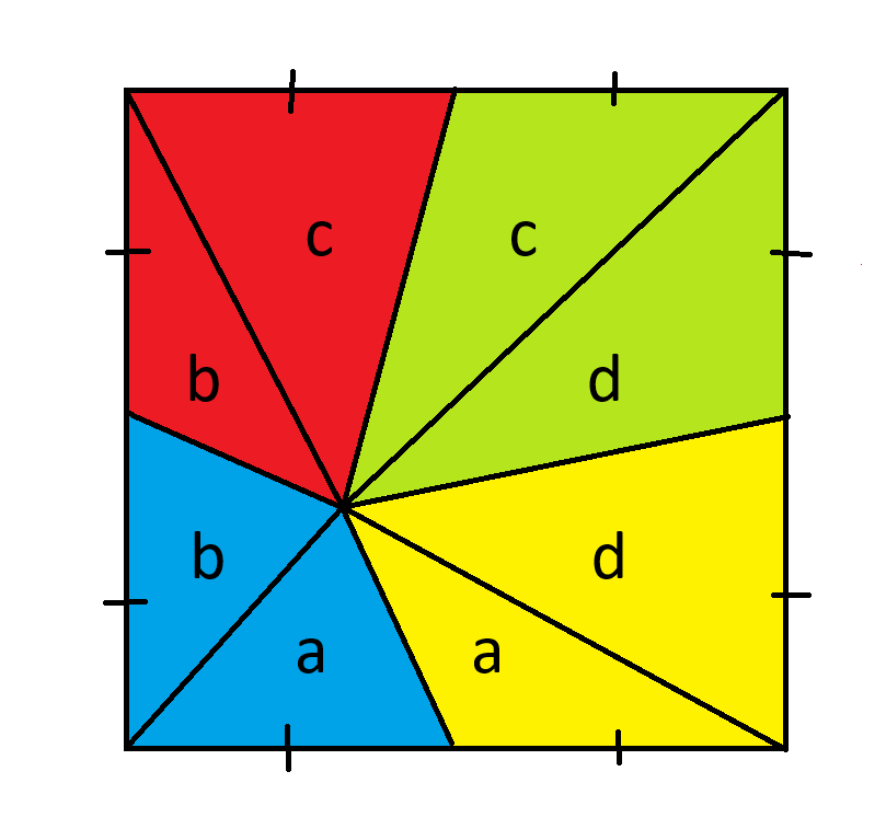 याद रखें कि त्रिभुज का क्षेत्रफल आधार*ऊँचाई/2 होता है। चूँकि सभी त्रिभुजों का आधार समान होता है, इसलिए हम समान ऊँचाई वाले त्रिभुजों को समान क्षेत्रफल वाले त्रिभुजों के रूप में जोड़ सकते हैं।