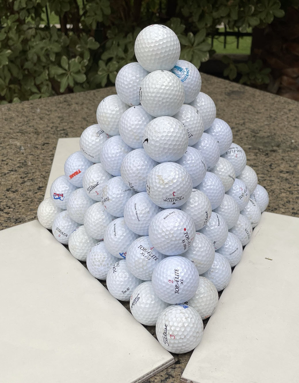 वर्गाकार या त्रिभुजाकार आधार वाले गोलों को एक साथ रखने का अधिक कुशल (अर्थात कम से कम स्थान बर्बाद करने वाला) तरीका क्या है?