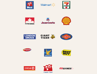 सबसे लोकप्रिय दुकानों में से कुछ हैं वॉलमार्ट, 7इलेवन, शेल, डॉलर जनरल, पेट्रो-कनाडा, जीन कोउटू, लंदन ड्रग्स, जायंट टाइगर, कॉर्नर स्टोर, एक्सप्रेस मार्ट, अल्ट्रामार, बेस्ट बाय, सर्कल के, काउच-अर्ड, ईबीगेम्स, फील्ड्स.सीए, फाइन फूड्स, फार्मासेव और मैक्स।