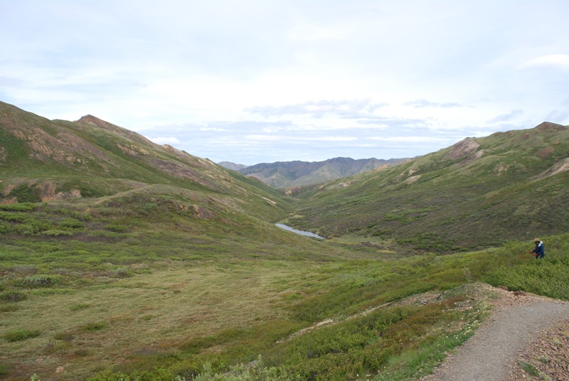तो मैंने बसों की शिकायत तो कर दी, लेकिन पार्क और वन्यजीवों के नज़ारों का क्या? मैं पार्क के बारे में (अभी तक) कुछ भी बुरा नहीं कहूँगा। यह शायद अमेरिका का "सभ्यता से सबसे कम प्रभावित" हिस्सा था जो मैंने कभी देखा है। ज़्यादातर समय, यह मीलों-मील तक फैली पहाड़ियों और छोटी-छोटी चोटियों से भरा था, अलास्का रेंज और माउंट मैकिन्ले के बड़े पहाड़ और भी दूर थे। हालाँकि, इस पैदल यात्री के लिए, स्कूल बस से वहाँ जाना निराशाजनक था, क्योंकि वे आपको पार्क में लगभग कहीं भी पैदल यात्रा और कैंपिंग करने की अनुमति देते हैं। कोई पगडंडियाँ नहीं, बस शानदार खुलापन। अमेरिका में अब ऐसी जगहें कम ही हैं। हालाँकि, अगर आप स्कूल बस में हैं, तो इतनी आज़ादी और रोमांच की संभावना आपको ज़्यादा फायदा नहीं पहुँचाती।