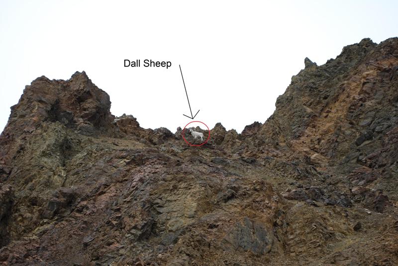 वन्यजीवों का क्या? डेनाली राष्ट्रीय उद्यान के कई पोस्टकार्डों में बसें भालुओं के परिवारों के सड़क पार करने के लिए इंतज़ार करती दिखाई देती हैं। यहाँ तक कि गाइडबुक भी कहती हैं कि डेनाली वन्यजीवों को देखने के लिए अमेरिका में सबसे अच्छी जगहों में से एक है। यात्रा की शुरुआत में, ड्राइवर ने कहा था कि अगर बस में कोई भी व्यक्ति कुछ भी देखे, तो उसे "रुको!" चिल्लाना चाहिए। हमारे साथ ऐसा दो बार हुआ। एक बार एक भेड़ के बच्चे के लिए, जिसे किसी अन्य यात्री ने सड़क के पास एक चट्टानी चट्टान पर बहुत ही चतुराई से देखा। मुझे स्वीकार करना होगा कि हमने उसे अच्छी तरह से देखा, खासकर मेरे कैमरे के ज़ूम लेंस से। दूसरा पड़ाव तीन भालुओं के लिए था - एक माँ और दो शावक - दूर एक पहाड़ी पर। किसी के पास उन्हें देखने के लिए अच्छी दूरबीन रही होगी। मैं दूर से सो रही माँ को केवल एक धब्बे के रूप में ही देख पाया। अगर मुझे यह नहीं बताया गया होता कि वह एक भालू है, तो मुझे कभी पता नहीं चलता।