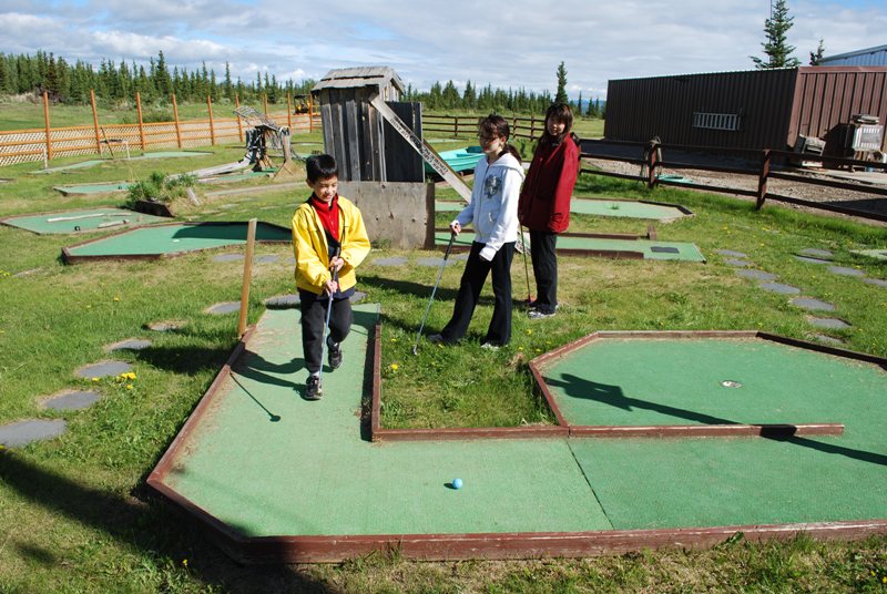 16 जून की सुबह, मैं अपनी रोज़ाना की तरह सुबह की सैर कर रहा था और मुझे एक मिनिएचर गोल्फ़ कोर्स (या पूर्वी तट पर जिसे आप "पुट-पुट गोल्फ़" कहते हैं) और एक झील दिखाई दी जहाँ किराए पर डोंगियाँ मिलती थीं। यह मिनिएचर गोल्फ़ ब्लैक डायमंड "मिडनाइट सन" गोल्फ़ कोर्स से जुड़ा हुआ था, जहाँ मुझे खेलना बहुत पसंद होता। वहाँ हमने क्लबहाउस में स्वादिष्ट नाश्ता किया, जिसके साथ मुफ़्त मिनिएचर गोल्फ़ भी था। मिनिएचर गोल्फ़ थोड़ा जर्जर था, कपों में घास उग रही थी, लेकिन अलास्का थीम वाले होल इसे फिर भी मज़ेदार बना रहे थे।