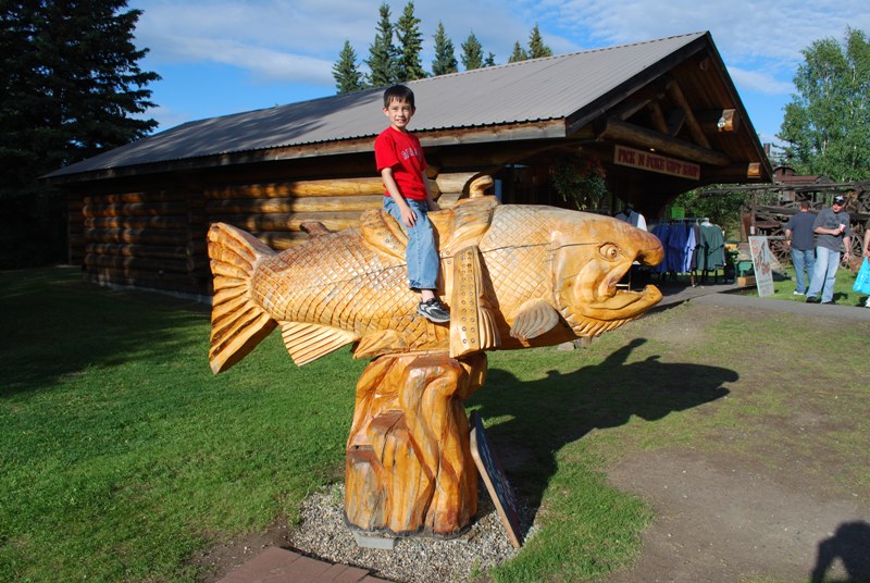 बिना किसी लाग-लपेट के कहूँ तो पायनियर पार्क परिवार के साथ घूमने के लिए एक बेहतरीन जगह है। यह सार्वजनिक पार्क और किफ़ायती थीम वाले आकर्षणों का एक संगम है, जैसे पार्क के चारों ओर ट्रेन की सवारी, एक हवाई जहाज़ संग्रहालय और एक लघु गोल्फ़ कोर्स। यहाँ असली लकड़ी के केबिनों का एक बड़ा संग्रह है जिन्हें पार्क में स्थानांतरित कर दिया गया था। कुछ का उपयोग छोटे व्यवसायों के रूप में किया जाता है जबकि अन्य खाली पड़े हैं। मैं और मेरा बेटा एक ऐसे केबिन में गए जो शून्य से 40 डिग्री नीचे के तापमान वाले फ़्रीज़र की ओर जाता था, ताकि हम जैसे पर्यटक फेयरबैंक्स में सर्दियों के मौसम जैसा अनुभव कर सकें। उस दिन तापमान वास्तव में 50 डिग्री से नीचे था। हमने इसे आज़माया, और मुझे कहना होगा कि यह उतना बुरा नहीं था। मैंने बाल्टीमोर में कई दिनों तक 20 डिग्री से नीचे का तापमान देखा है, और मुझे इसके और 50 डिग्री से नीचे के तापमान के बीच का अंतर महसूस नहीं हुआ। शायद यह एक मनोवैज्ञानिक बात थी। मुझे उम्मीद थी कि मैं कुछ ही सेकंड में बर्फ़ के टुकड़े की तरह जम जाऊँगी, और जब ऐसा नहीं हुआ, तो मैं कहना चाहती थी, "अरे, यह तो गर्म है!" वहाँ काम करने वाली महिला बहुत अच्छी थी और उसे अलास्का के बारे में बात करना अच्छा लगता था। उन्होंने कई अन्य बातों के अलावा यह भी कहा कि सर्दियों के दौरान फेयरबैंक्स के लोगों को ठंड से कहीं अधिक अंधेरा परेशान करता है।