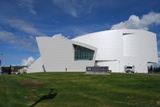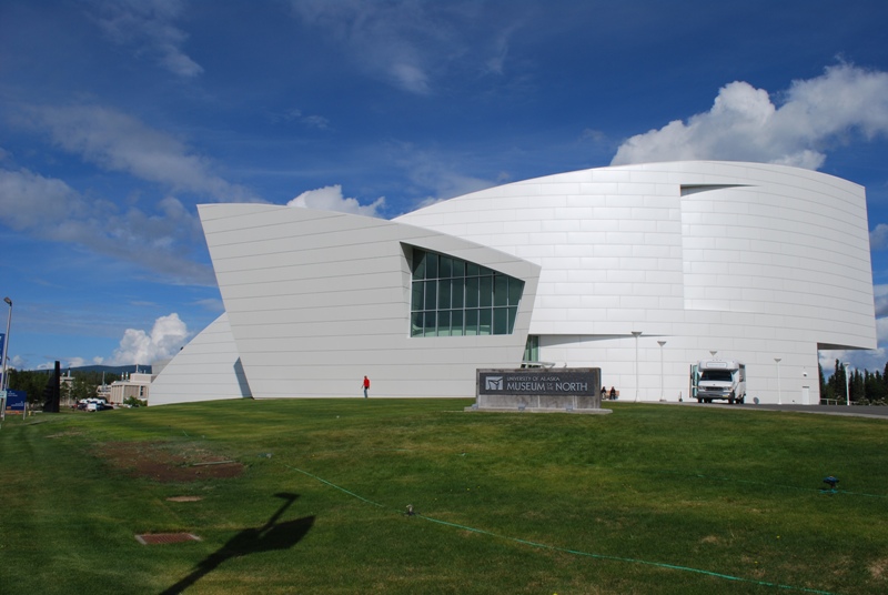 यह अलास्का विश्वविद्यालय के परिसर में स्थित एक विशाल, आधुनिक इमारत है। फेयरबैंक्स में आधुनिक वास्तुकला थोड़ी बेमेल लगती है, लेकिन कोई बात नहीं। अंदर की प्रदर्शनी बेहतरीन थी, जिसमें अलास्का के वन्यजीवों और मूल अमेरिकी कलाकृतियों के बारे में जानने लायक बहुत कुछ था। यहाँ एक बड़ा थिएटर भी है जहाँ स्टेडियम में बैठने की जगह के बराबर तीन अलग-अलग फ़िल्में बारी-बारी से दिखाई जाती हैं। मैंने फेयरबैंक्स के जीवन पर आधारित एक और उत्तरी रोशनी पर आधारित एक फ़िल्म देखी। उत्तरी रोशनी देखना मेरी "बकेट लिस्ट" में ज़रूर शामिल है, और मध्य अलास्का उन्हें देखने के लिए एकदम सही जगह है।