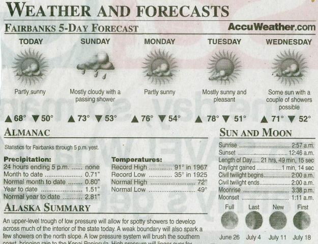 आमतौर पर जब कोई "आधी रात के सूरज" का ज़िक्र करता है, तो उसका मतलब होता है कि सूरज डूबता नहीं है। ऐसा साल के कुछ खास समय में ही आर्कटिक सर्कल के ऊपर और अंटार्कटिक सर्कल के नीचे हो सकता है। फेयरबैंक्स अभी भी आर्कटिक सर्कल से लगभग 200 मील दक्षिण में है, इसलिए साल के सबसे लंबे दिन में भी सूरज डूबता है। हालाँकि, जैसा कि मैंने अपने अलास्का यात्रा वृत्तांत के दूसरे भाग में बताया था, सूर्यास्त और सूर्योदय के बीच के कुछ घंटों के दौरान बाहर काफ़ी उजाला रहता था। जैसा कि इस अखबार की कटिंग से पता चलता है, उस दिन फेयरबैंक्स में सूरज रात 12:46 बजे डूबा और रात 2:57 बजे उगा, यानी 21 घंटे 49 मिनट तक धूप रही। यह "साल के सबसे लंबे दिन" से अभी भी दो दिन कम है। तो इस दौड़ का शीर्षक कुछ हद तक ग़लत था, लेकिन किसे परवाह?