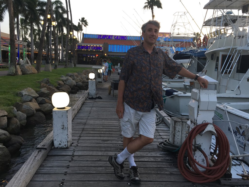 मुझे लगता है कि अरूबा में यही एकमात्र ऐसा कैसीनो है जो किसी भी तरह से किसी होटल से जुड़ा नहीं है। यह एक बड़े घाट पर स्थित है जिस पर कई दुकानें और रेस्टोरेंट हैं, बिल्कुल सैन फ़्रांसिस्को के पियर 39 जैसा। जिस शाम मैं वहाँ गया था, वहाँ कुछ स्थानीय लोगों के स्लॉट खेलने के अलावा बहुत सन्नाटा था। लगभग सभी टेबल गेम बंद थे, जो इस प्रकार थे: