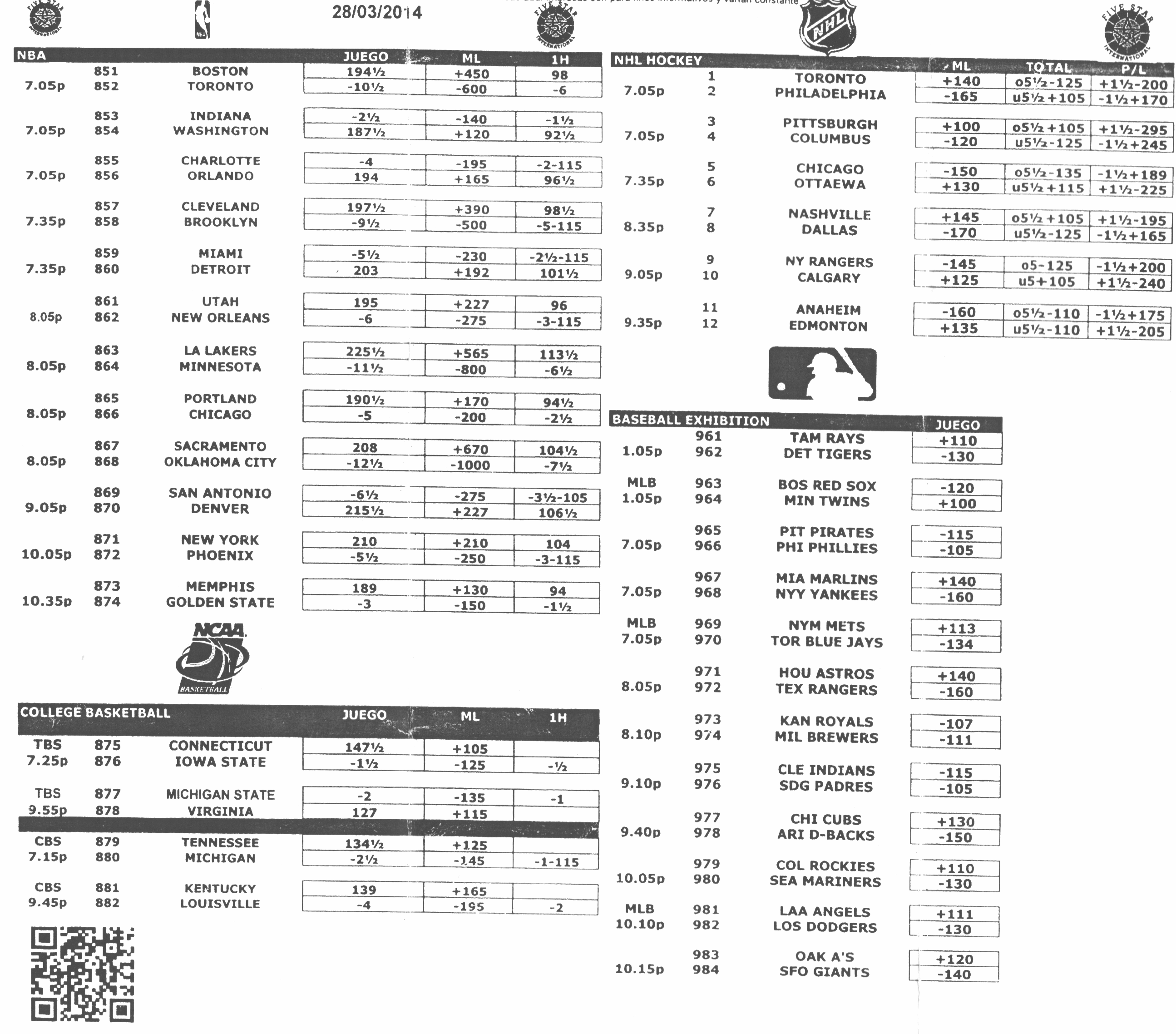 खेलों पर सट्टा लगाने के लिए एक छोटा सा क्षेत्र था, जैसे अमेरिका में विलियम हिल फ्रैंचाइज़ी। दांव लगाने के लिए उपलब्ध खेल ज़्यादातर अमेरिकी खेल थे, जिनमें बेसबॉल पर ज़ोर दिया जाता था। इसके अलावा, एक बात जो डोमिनिकन गणराज्य को ज़्यादातर दूसरे लैटिन अमेरिकी देशों से अलग बनाती है, वह यह है कि बेसबॉल ही राजा है, फ़ुटबॉल नहीं। पॉइंट स्प्रेड और टोटल की रेखाएँ लगातार 20-सेंट की लगती थीं, जिसमें बेसबॉल मनी लाइन भी शामिल थी (उदाहरण के लिए, बोर्ड पर एक खेल में मार्लिंस +140, यांकीज़ -160) था। नीचे कुछ सट्टेबाज़ी शीट के स्कैन दिए गए हैं जिन्हें मैं घर ले गया।![]() | ![]() |