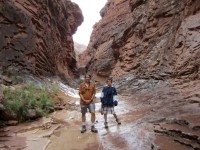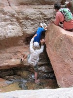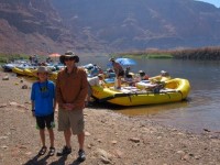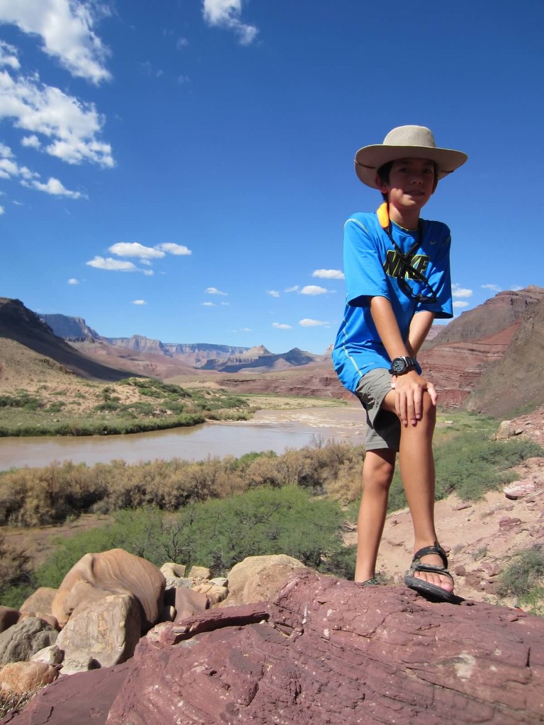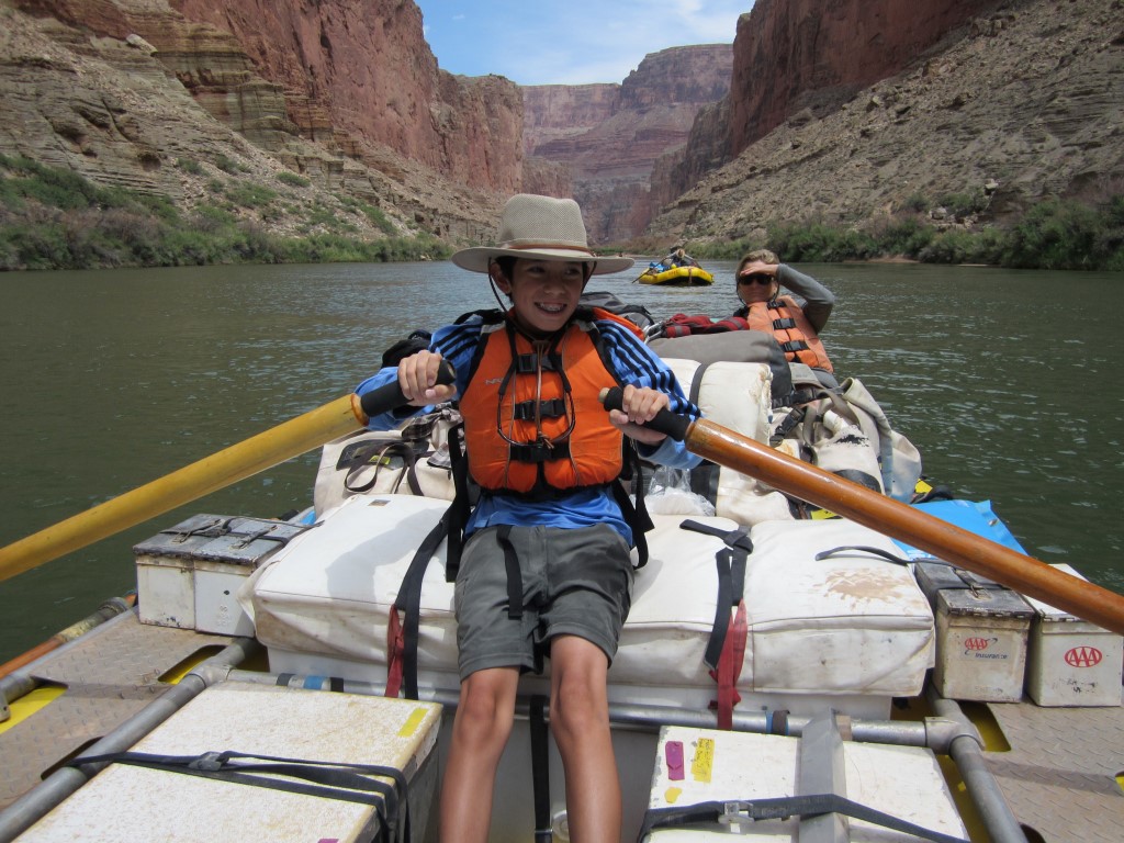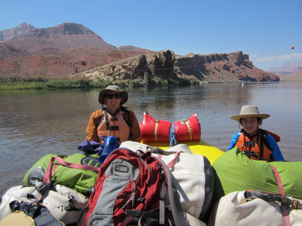 आम तौर पर, OARS इस यात्रा के लिए न्यूनतम आयु 12 वर्ष निर्धारित करता है। जिस समय हमने यह यात्रा की, उस समय मेरा बेटा साढ़े ग्यारह साल का था। इसलिए मैंने इस नियम में छूट का अनुरोध किया। मैंने OARS को आश्वस्त किया कि वह एक अच्छा तैराक है और घाटी से बाहर निकलने की चढ़ाई संभाल सकता है, जैसा कि माउंट व्हिटनी की चोटी पर हम दोनों की एक तस्वीर (तस्वीर का ULR) से पता चलता है, जब वह दस साल का था। मैं वास्तव में ग्रैंड कैन्यन के दूसरे भाग पर जाना चाहता था, लेकिन OARS ने एडन को तभी जाने दिया जब हम पहले भाग पर जाएँ, जहाँ तेज़ धाराएँ कम तेज़ हैं।