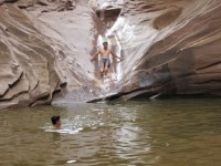 अपनी पैदल यात्रा के लिए, हम उत्तरी घाटी में कुछ दूर गए, जो किनारे पर सैकड़ों घाटियों में से एक थी। हमारी मंज़िल एक प्राकृतिक चट्टानी ढलान और उसके नीचे बना एक तालाब था। इससे पता चलता है कि मैं पूरे दिन स्विमिंग सूट पहनने की सलाह क्यों देता हूँ।