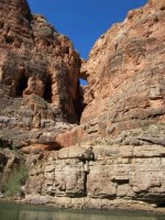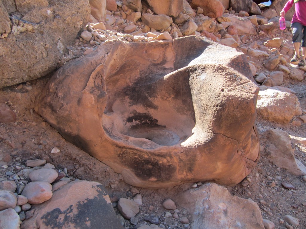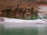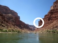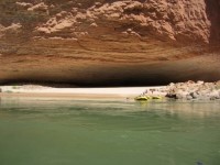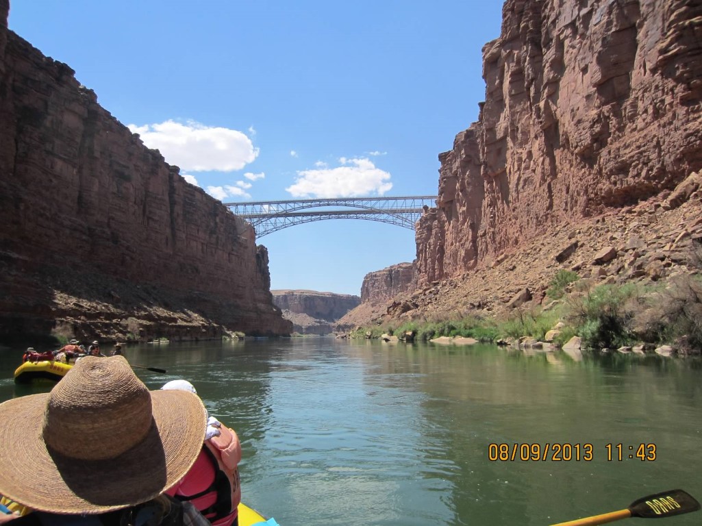 पहला उल्लेखनीय स्थल नवाजो ब्रिज था, जिसके ऊपर से हम अभी-अभी गुज़रे थे और अब उसके नीचे तैर रहे थे। यह नदी से 470 फीट ऊपर उठता है। हम पहले से ही एक घाटी जैसी जगह पर थे, हालाँकि पाँच दिन बाद जब हम फैंटम रैंच पहुँचे, तो किनारा दस गुना ऊँचा हो गया होगा।