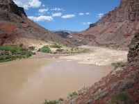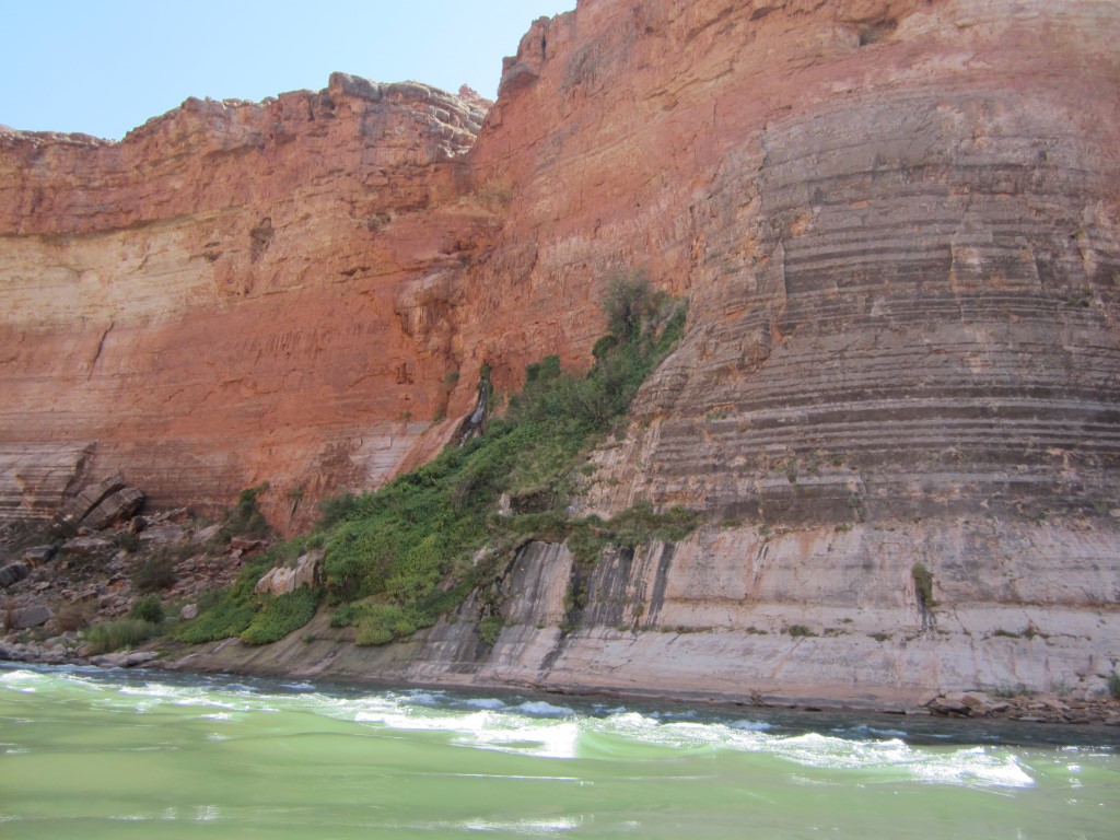 62वें मील पर, हम कोलोराडो नदी और लिटिल कोलोराडो नदी के संगम पर पहुँचे। हाल ही में हुई बारिश के कारण लिटिल कोलोराडो नदी का पानी बहुत कीचड़ भरा था। दोनों नदियों के मिलने के बाद, कोलोराडो नदी का रंग क्रिस्टल हरे से कीचड़ भरे भूरे रंग में बदल गया।