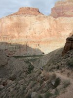 पाइप क्रीक नदी से दक्षिण रिम तक की पैदल यात्रा, मेरी राय में, अमेरिका की सबसे बेहतरीन पैदल यात्राओं में से एक है। सात मील का यह ट्रेक (एकतरफ़ा) विभिन्न चट्टानी परतों और जलवायु क्षेत्रों से होकर गुजरता है। निचला आधा हिस्सा ज़्यादातर छाया में है और इसका ज़्यादातर हिस्सा एक धारा के साथ बहता है। आधे रास्ते में इंडियन गार्डन है, जो एक कैंपिंग क्षेत्र है जहाँ बाथरूम और पानी की सुविधा है। बाकी रास्ता ज़्यादातर खड़ी घाटी की दीवार के साथ-साथ मोड़ों वाला है।चिलचिलाती धूप से बचने के लिए यह काम सुबह 10 बजे से पहले या शाम 5 बजे के बाद करना बेहतर होगा। इंडियन गार्डन्स से ऊपर जाने वाले रास्ते पर, रिम से 1.5 और 3 मील की दूरी पर दो बाथरूम और पानी के स्रोत हैं।
