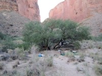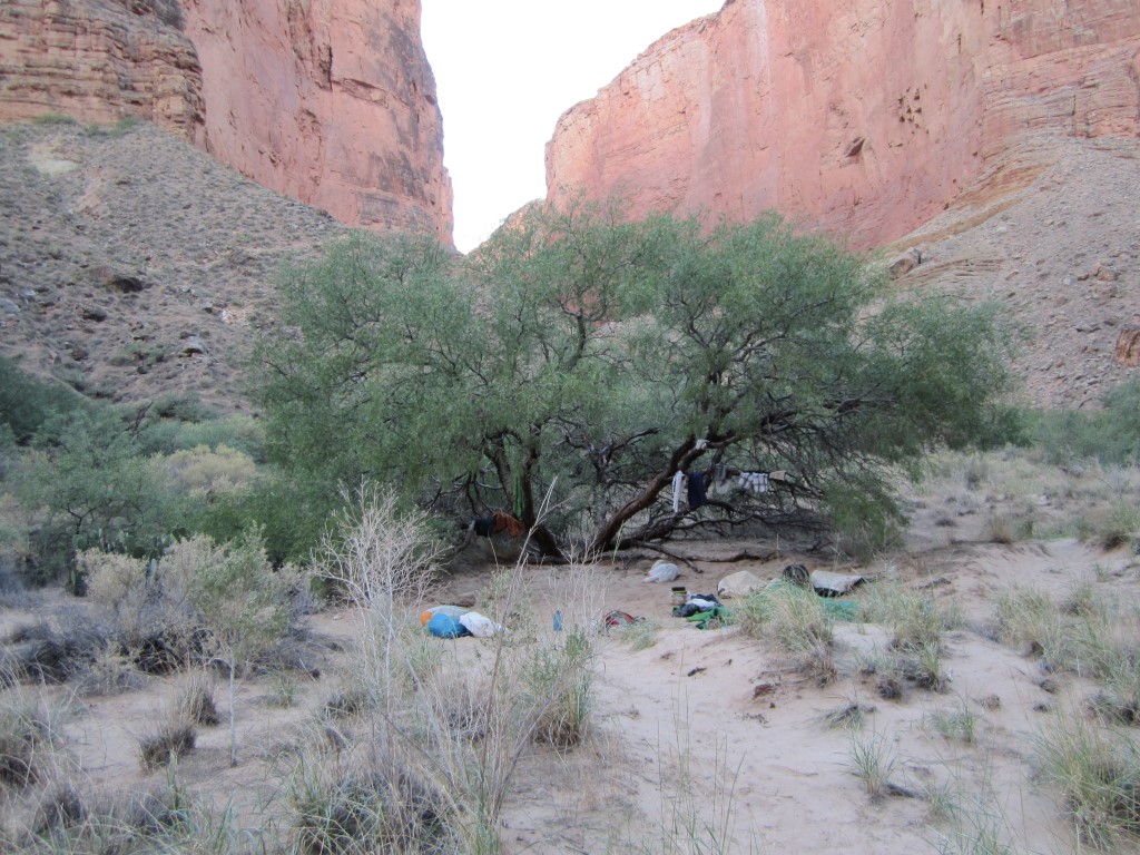 संक्षेप में कहें तो, अन्य राफ्ट समूह हमारी समस्या के प्रति सहानुभूति रखते थे और उन्होंने हमें 87 और 88 मील के बीच लोअर क्रिमेशन कैंपग्राउंड में रहने की अनुमति दे दी। यह रात 3 वाले स्थान के समान ही था, जिसमें पर्याप्त जगह थी, लेकिन पथरीला और धूप वाला था।