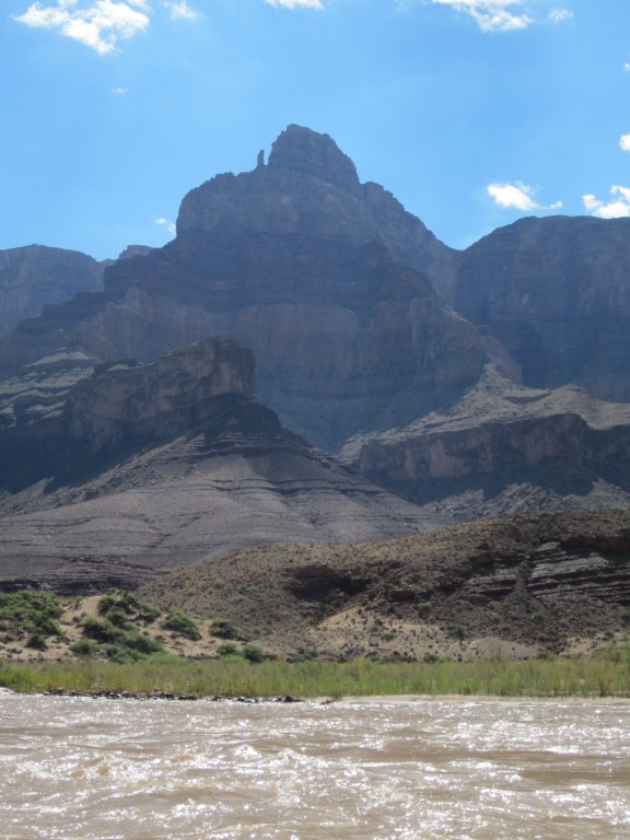 कभी-कभी हम ऐसी जगहों पर पहुँच जाते थे जहाँ तेज़ धाराएँ तो नहीं थीं, लेकिन तैरना भी आसान नहीं था। अक्सर, नदी के कुछ हिस्सों में धारा दूसरे हिस्सों की तुलना में बहुत तेज़ होती थी। गाइड नदी में तेज़ गति से चलने के लिए सही जगह ढूँढ़ने में माहिर थे—लेकिन मैं नहीं था। मुझे लगता है कि नौकायन का ज़्यादातर उद्देश्य तेज़ गति से दौड़ना नहीं, बल्कि तेज़ धाराओं में पैंतरेबाज़ी करना था। इसीलिए, ग्रैंड कैन्यन में दौड़ने के लिए ताकत से ज़्यादा अनुभव ज़रूरी है।
