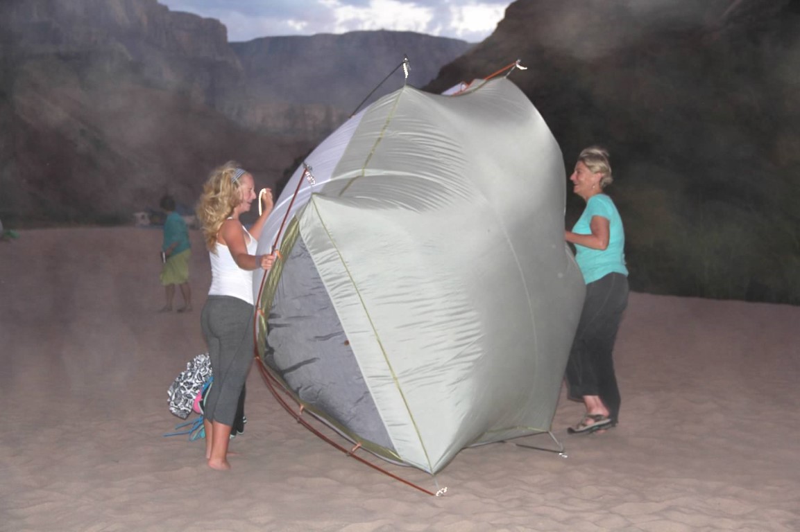 उन्होंने हर दो लोगों के लिए दो लोगों का एक टेंट भी मुहैया कराया। हालाँकि, हमारे मामले में इसकी ज़रूरत नहीं थी। इतनी ठंड भी नहीं थी कि इसकी ज़रूरत पड़े। हालाँकि ग्रैंड कैन्यन में अगस्त सबसे ज़्यादा बारिश वाला महीना होता है, फिर भी हमने शाम 4 बजे से आधी रात तक सिर्फ़ कुछ ही बार बारिश देखी। उस बारिश के दौरान, मैं पहले से ही बिस्तर पर था और सिर्फ़ स्लीपिंग बैग में शरण लेकर संतुष्ट था। मुझे लगता है कि पहली रात मेरे अलावा सभी मेहमानों ने टेंट लगाया था, लेकिन आखिरी रात तक, मुझे एक भी टेंट नहीं दिखा।