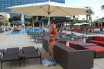 मुझे कबूल करना होगा: मैंने पूल से ज़्यादा नीचे दी गई तस्वीर में दिख रही लिसा पर ध्यान दिया। इसका डिज़ाइन कुछ अनोखा है। डेक से देखने पर ऐसा लगता है जैसे बीच में एक ही पूल है और दोनों तरफ़ आइलैंड केबिन हैं। दरअसल, आइलैंड केबिन और उन्हें जोड़ने वाले रास्ते पानी को दो पूलों में बाँट देते हैं। यहाँ दो बड़े स्पा भी हैं और बगल में 21 साल से ज़्यादा उम्र वालों के लिए एक अलग पूल का सुरक्षित प्रवेश द्वार है। अगर यूरोपियन (टॉपलेस) धूप सेंकना भी शामिल है, तो बदकिस्मती से मैंने किसी भी महिला को इस अधिकार का इस्तेमाल करते नहीं देखा। हालाँकि, मुझे पिंग-पोंग और फ़ूज़बॉल का खेल ज़रूर पसंद आया।