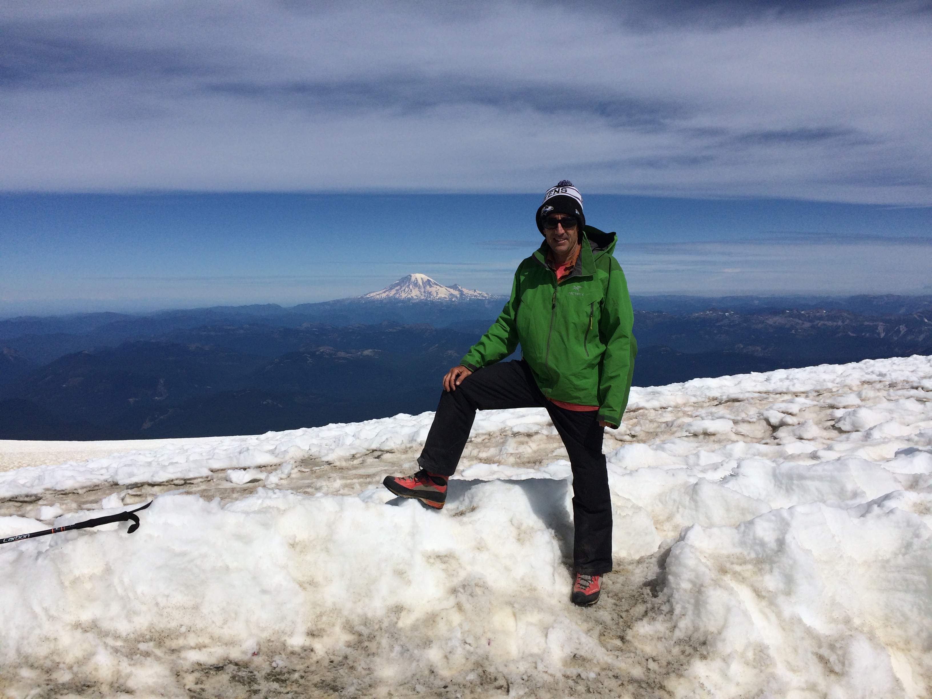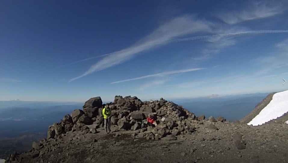 शिखर से नज़ारे बेहद खूबसूरत थे। जैसे ही हम शिखर पर पहुँचे, हमें उत्तर में माउंट रेनियर का साफ़ नज़ारा देखने को मिला, जो मैंने दो साल पहले वहाँ चढ़ने के बाद से नहीं देखा था। पश्चिम में माउंट सेंट हेलेन्स था। दक्षिण में माउंट हूड और माउंट जेफरसन थे, और मैं मुश्किल से थ्री सिस्टर्स को देख पा रहा था। शिखर की तस्वीरें और वीडियो लेने के बाद, हमने उस शुक्रवार, 25 अगस्त, 2017 की सुबह अपने साथी पर्वतारोहियों के साथ बातचीत की। शिखर की ऊँचाई का वह एहसास हमेशा साझा करने पर बेहतर होता है।
