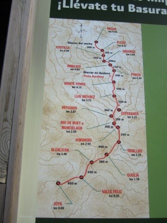 अगले पड़ाव पर, मैंने गाइड को अपनी हरी पानी की बोतल दी। जैसा कि आपको याद होगा, ऑक्सीजन की कमी से जूझ रहे दिमाग के बावजूद, मैंने इतनी दूरदर्शिता दिखाई कि पूछा कि क्या उसके पास कोई खाली बोतल है जिसमें मैं पानी डाल सकूँ, तो उसने मना कर दिया। जैसे ही मैंने अपने बैग से पानी की बोतल निकाली, उसने अपनी बोतल से एक खाली प्लास्टिक की पानी की बोतल निकाली। वाह! मैंने उससे सीधे पूछा कि क्या उसके पास है, तो उसने कहा "नहीं।" अब सोच रहा हूँ, मुझे उससे स्पेनिश में पूछना चाहिए था, जो मैं कर सकता था। धिक्कार है! खैर, गिरे हुए दूध या दूषित पानी पर रोने का कोई मतलब नहीं है, इसलिए मैंने उसकी बोतल में इतना पानी डाला कि वह वापस झोपड़ी तक पहुँच सके। कम से कम अब मुझे उसे ढोना तो नहीं पड़ेगा।