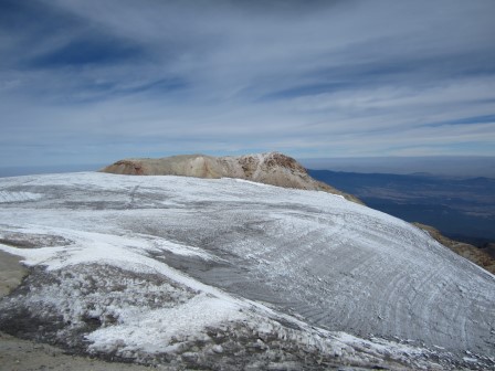 हमारे स्थान को चिह्नित करने के लिए केवल एक मानव निर्मित वस्तु एक भगवान की आँख और एक चाय का बर्तन थी। बर्फ के मैदान के उस पार एक बिंदु पर दो या तीन क्रॉस बने थे। हालाँकि, इस पहाड़ पर हर जगह क्रॉस बने हुए थे, इसलिए उनका कोई खास मतलब नहीं था। तीसरे बिंदु पर, जहाँ बर्फ को छुए बिना पहुँचा जा सकता था, कुछ भी मानव निर्मित नहीं था। किसी शिखर पर झंडा, सर्वेक्षण चिह्न, या रजिस्टर देखना हमेशा अच्छा लगता है ताकि वह उच्चतम बिंदु चिह्नित हो और बेहतर शिखर तस्वीरें ली जा सकें। मुझे रूढ़िबद्धता के लिए क्षमा करें, लेकिन मेक्सिकोवासी आमतौर पर किसी भी चीज़ को सजाने और यादगार बनाने में संकोच नहीं करते। किसी तरह, जहाँ हम खड़े थे, वह किसी शिखर जैसा नहीं लग रहा था।