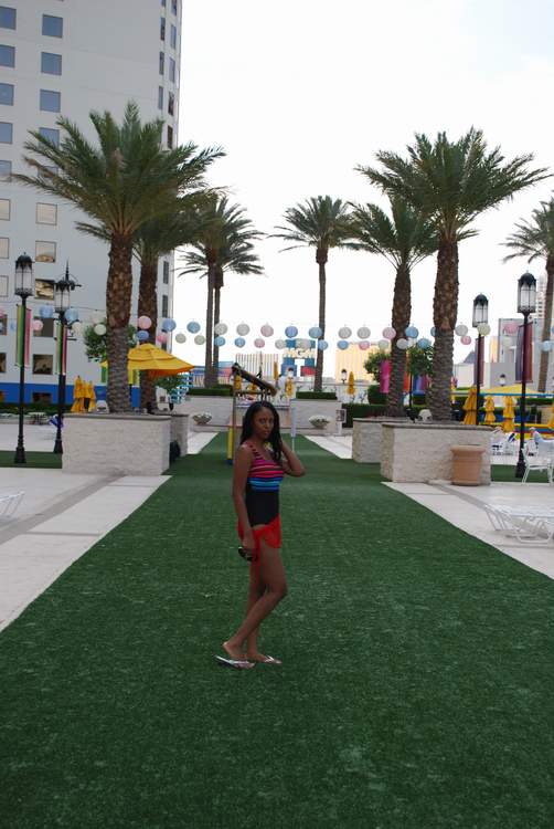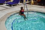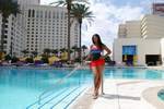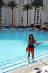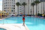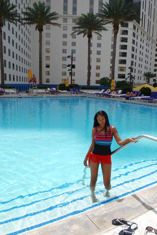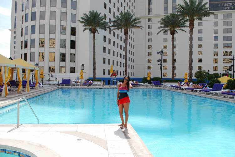 एक स्ट्रिप कैसीनो के लिए, मुझे प्लैनेट हॉलीवुड पूल को कम रेटिंग देनी होगी। कैसीनो की छत पर, छठी मंज़िल पर दो पूल हैं। दोनों पूलों के बीच एक बड़ा खुला मैदान है। पूल सादे थे, जिनमें बहुत कम हरियाली या विशेष सुविधाएँ थीं। हॉट टब पर "केवल वीआईपी" का साइन लगा हुआ था, लेकिन निक्किया (नीचे चित्र में) और मैं समेत सभी लोग चुपके से निकल जा रहे थे।रेस्टोरेंट