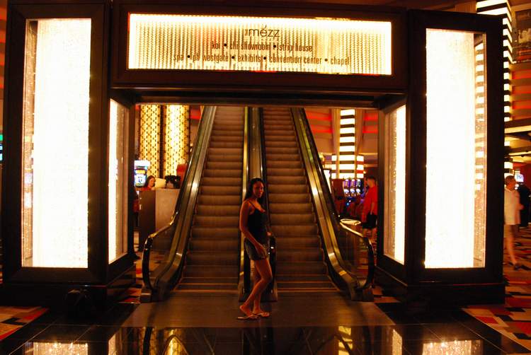 कम से कम मेरे लिए तो, कार से चेक-इन तक का सफ़र बेहद थका देने वाला और निराशाजनक था। मॉल में लंबा सफ़र, सारा सामान ढोना और कसीनो के दो चक्कर लगाने के बाद, आखिरकार मुझे नीचे रजिस्ट्रेशन डेस्क मिल ही गया। अगर आपको इस समीक्षा से बस एक ही बात याद है, तो वो ये कि चेक-इन कैसे ढूँढ़ा जाता है। कसीनो के लेवल से, नीचे जाते हुए एक एस्केलेटर को देखिए, जो एक बड़े, गोलाकार झूमर के नीचे है। इसे बुफ़े तक जाने वाले एस्केलेटर से भ्रमित न करें।