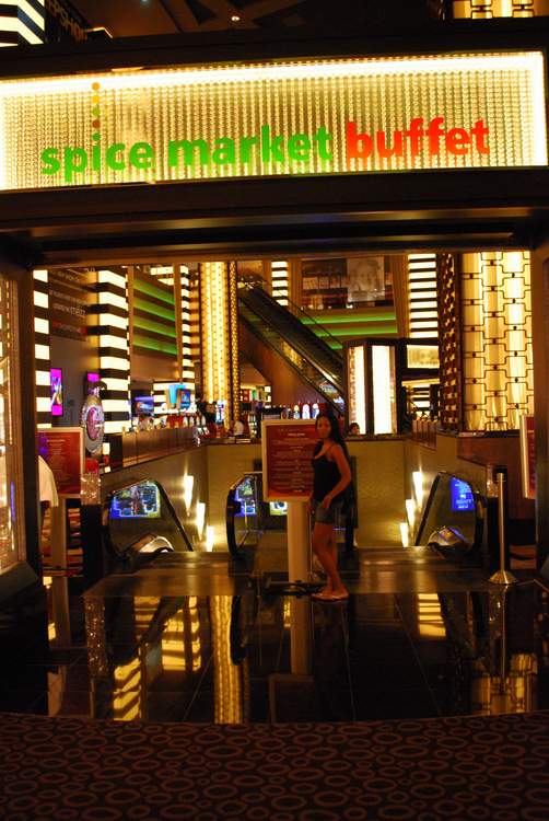 स्पाइस मार्केट बुफ़े : यह पुराने अलादीन, जो प्लैनेट हॉलीवुड का पूर्ववर्ती था, का अवशेष है। बुफ़े एक बड़े कमरे में है जिसमें दुनिया के अलग-अलग हिस्सों को दर्शाने वाले कई अलग-अलग स्टेशन हैं। मैं वहाँ नाश्ते के लिए गया था। वहाँ नाश्ते के बुफ़े के लिए सभी सामान्य चीज़ें थीं, लेकिन कुछ अच्छे आश्चर्य क्रेप्स और फ्रूट स्मूदी के लिए स्टेशन थे। सेवा ठीक थी, और लाइन छोटी थी, कम से कम सुबह 7:30 बजे तक। मैंने देखा है कि रात के खाने के समय लाइन बहुत लंबी लगती है। अगर आप होटल में ठहरते हैं, तो अपना कूपन लाना न भूलें, अगर आपके पास है, तो मैं उसे लाना भूल गया। बुफ़े की कीमतें ये हैं: