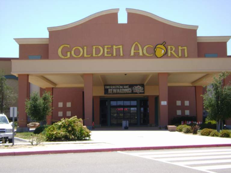 गोल्डन एकॉर्न, I-8 के पास एक छोटा सा कसीनो है, जो सैन डिएगो कसीनो से सबसे पूर्व में है। वहाँ मेरे सभी डीलर बहुत मिलनसार और मिलनसार थे। जब मैं वहाँ था, तब वे एक टी-शर्ट प्रमोशन चला रहे थे, जिसमें कहा गया था कि 21 ब्लैकजैक जीतो और एक मुफ़्त टी-शर्ट पाओ। हालाँकि मुझे मुफ़्त टी-शर्ट बहुत पसंद है, लेकिन मेरे कार्ड पर सिर्फ़ छह स्टैम्प जमा हो पाए। मैंने पिट बॉस से विनती की कि मुझे तीन स्पॉट खेलने दें ताकि मैं जल्दी स्टैम्प कमा सकूँ, लेकिन उन्होंने मना कर दिया।