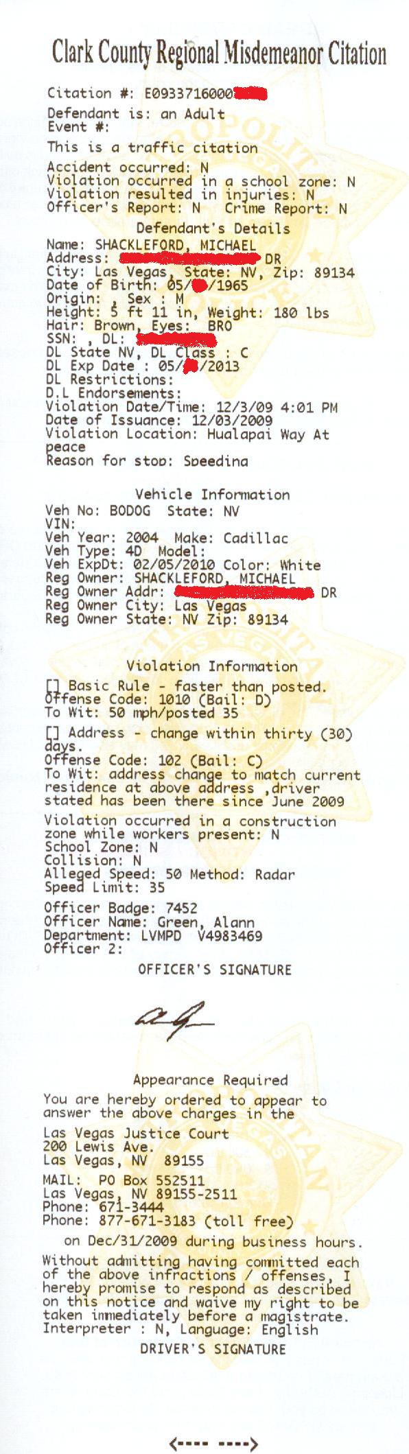 घर लौटने पर, मैंने टिकट वेकर्स से संपर्क किया। पूरे वेगास में टिकट वेकर्स जैसी कानूनी सेवाओं का प्रचार करने वाले होर्डिंग लगे हैं, जो ट्रैफ़िक के जुर्माने से लड़ते हैं। मुझे बताया गया है कि वे "पार्किंग उल्लंघन" के लिए उन्हें कम कर देते हैं, इसलिए जुर्माना कम होता है और आपके रिकॉर्ड में कोई अंक नहीं जुड़ते। वे ऐसा कैसे कर पाते हैं, मुझे अभी भी पूरी तरह से यकीन नहीं है। मैंने अपनी विज़ार्ड ऑफ़ वेगास वेबसाइट पर इसके बारे में पूछा, और मुझे बहुत सारी अच्छी टिप्पणियाँ मिलीं, लेकिन नेवादा ट्रैफ़िक अदालतों से परिचित किसी व्यक्ति से सीधे तौर पर कोई जवाब नहीं मिला।