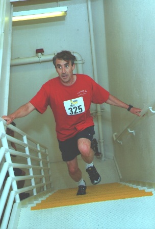 हालाँकि मंज़िलें गिने-चुने ही थीं, मेरा शुरुआती उत्साह आखिरकार ठंडा पड़ गया। महिलाएँ मुझे यूँ ही 60 सेकंड का अजूबा नहीं कहतीं। इस मोड़ पर मुझे धीरे-धीरे चलना पड़ा, हर कदम पर कदम बढ़ाना पड़ा, और तेज़ चलने की गति से। आखिरकार मैंने अपना संयम संभाला और अपनी गति बढ़ा ली, लेकिन यह उतनी तेज़ नहीं थी जितनी मैंने शुरू की थी। एक लय जो मुझे अपने लिए उपयुक्त लगी, वह थी हर दूसरी सीढ़ी पर बारी-बारी से सीढ़ियाँ कूदना और एक स्थिर लेकिन तेज़ चलने की गति बनाए रखने की कोशिश करना। इस दौरान, मैंने कई अन्य पर्वतारोहियों को पीछे छोड़ दिया। मैं एक प्रतिस्पर्धी व्यक्ति हूँ और हमेशा दूसरों को किसी भी चीज़ में हराने का आनंद लेता हूँ।
