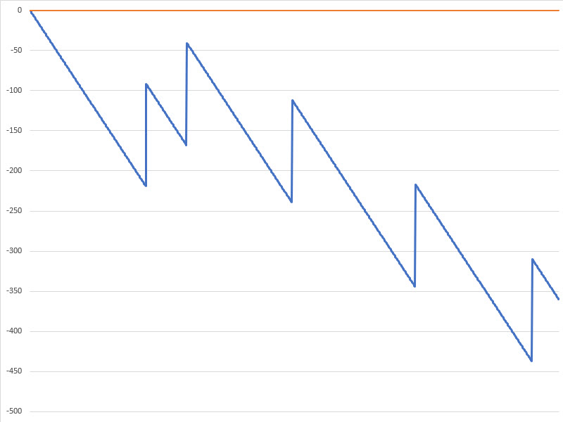 निम्नलिखित तालिकाएँ विभिन्न खेलों, दांवों और विजयी लक्ष्यों के अंतर्गत खेले गए एंटी-मार्टिंगेल के अरबों सत्रों के सिमुलेशन के मेरे परिणाम दर्शाती हैं। विजयी लक्ष्यों में मूल इकाई दांव शामिल है। ऋणात्मक पूर्णांक कोष्ठक में दिए गए हैं। इन सिमुलेशनों में, एक सत्र या तो एक इकाई के नुकसान या विजयी लक्ष्य की प्राप्ति के साथ समाप्त हुआ।