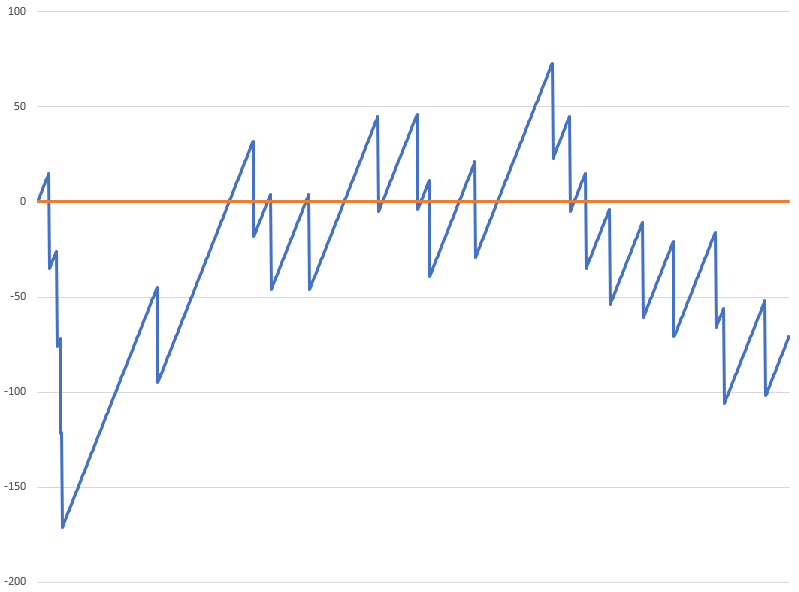 मामूली रूप से हारने वाले सत्रों में जीतने में सक्षम होने के बावजूद, अधिकांश समय छोटी जीत की कीमत चुकानी पड़ती है, तथा अत्यधिक ठंडे सत्रों में बड़ी जीत की कीमत चुकानी पड़ती है, जो लंबे समय में उन छोटी जीतों को मिटा देती है।