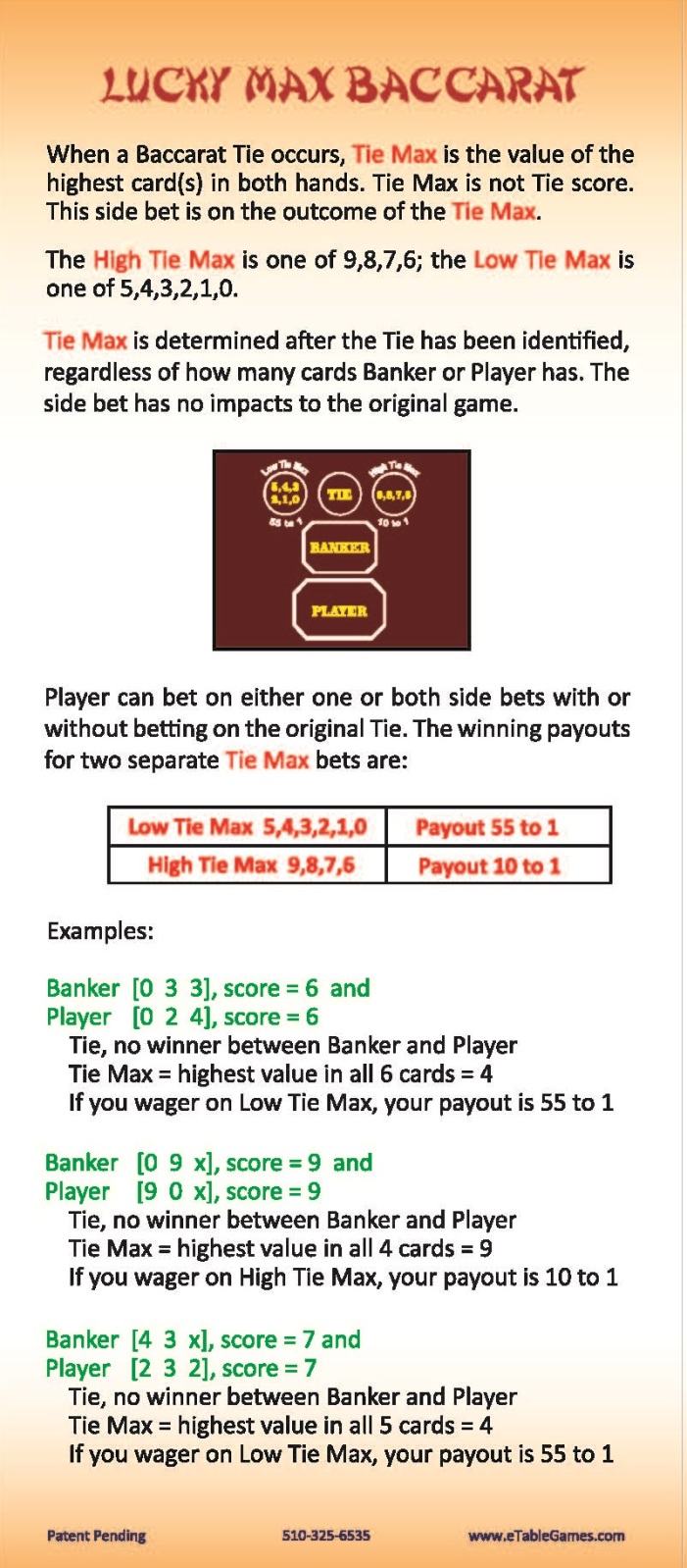 टाई मैक्स, जिसे पहले लकी मैक्स के नाम से जाना जाता था, बैकारेट में दांव लगाने का एक ऐसा तरीका है जो बराबरी की स्थिति में सबसे बड़े कार्ड पर आधारित होता है। मैंने इसके बारे में पहली बार दिसंबर 2015 में सुना था, जब यह लास वेगास के गोल्ड कोस्ट में प्रदर्शित हुआ था।