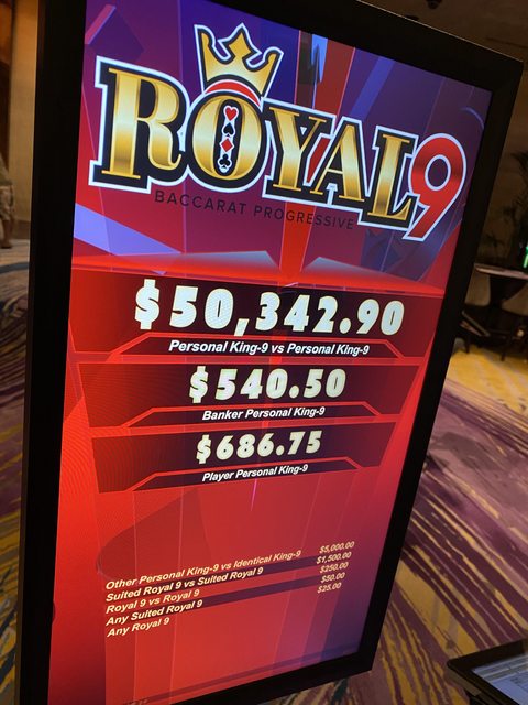 रॉयल 9 एक प्रगतिशील बैकारेट साइड बेट है। इसकी बेट राशि $5 है। जीत खिलाड़ी और/या बैंकर के हाथ में "रॉयल 9" होने पर निर्भर करती है, जिसे नौ और किसी भी फेस कार्ड के रूप में परिभाषित किया जाता है। कुछ जीत खिलाड़ी और/या बैंकर के हाथ में प्रत्येक बेटिंग पोजीशन पर मुद्रित रॉयल 9 से मेल खाने पर निर्भर करती हैं। इस साइड बेट का विपणन AGS द्वारा किया जाता है।