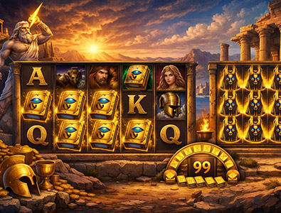 पांच रील, 10 पेलाइन, $0.10 से $100 तक के स्पिन। ग्रीक पौराणिक कथाओं पर आधारित यह गेम, जिसमें पुस्तक वाइल्ड और फ्री स्पिन ट्रिगर दोनों का काम करती है। स्टैंडर्ड ट्रिगर स्पिन के अंत में स्क्रीन पर कहीं भी तीन या अधिक पुस्तकें दिखाई देना है।