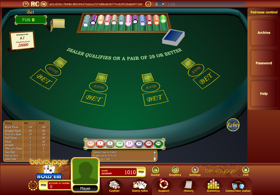 बेट वॉयेजर होल्ड 'एम - जीरो हाउस एज पे टेबल।