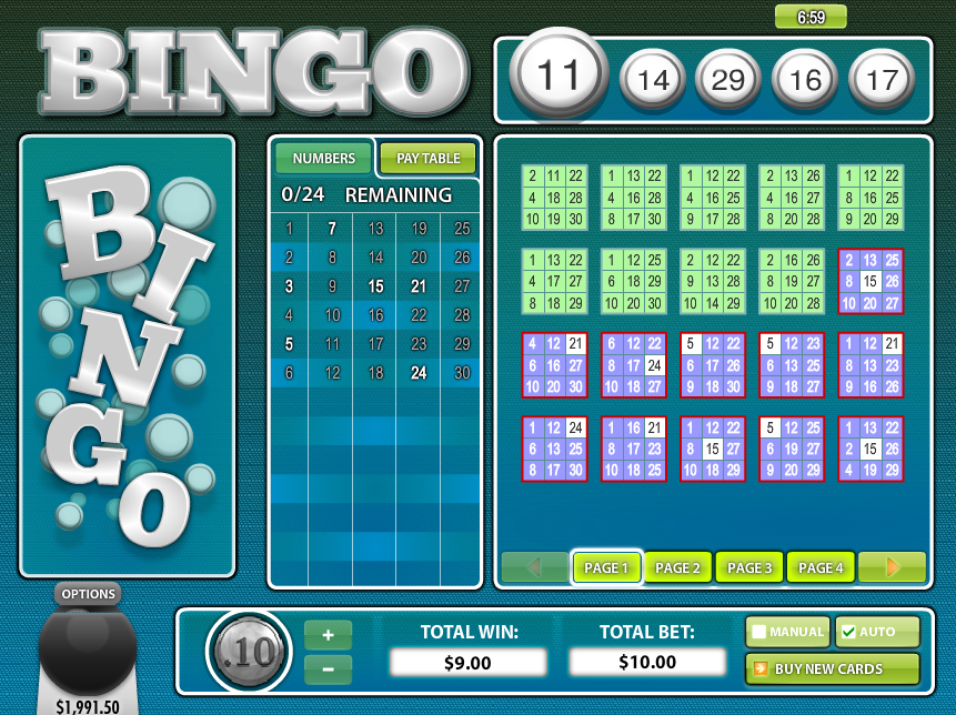 - खिलाड़ी यह चुनकर शुरुआत करता है कि उसे कितने कार्ड खेलने हैं (1 से 100 तक), प्रति कार्ड दांव (10¢ - $1), और ड्रॉ में गेंदों की संख्या (20, 22, या 24)।