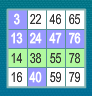 - यह खेल 4 गुणा 4 बिंगो कार्डों पर खेला जाता है, जिनमें से प्रत्येक पर 1 से 80 तक 16 यादृच्छिक संख्याएं होती हैं।