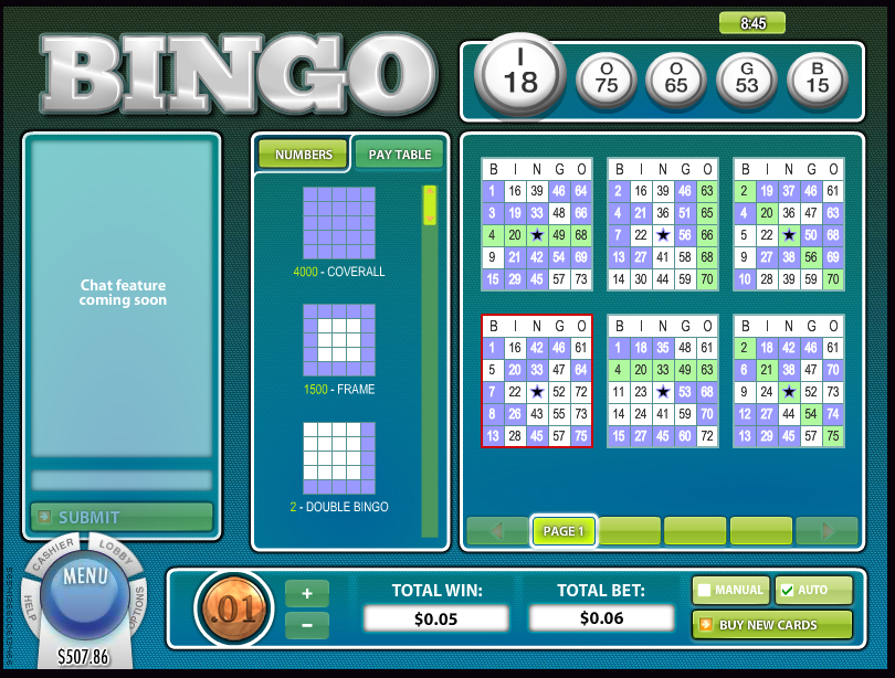 75 अंकों का यह खेल 5 गुणा 5 के पत्तों पर खेला जाता है, जिसके बीच में एक खाली वर्ग होता है। जीतने के सात अलग-अलग तरीके हैं। प्रत्येक पत्ते पर, केवल सबसे बड़ी जीत का भुगतान किया जाता है। खिलाड़ी 35, 45 या 55 संख्याएँ चुन सकता है। जितनी कम गेंदें होंगी, खिलाड़ी के जीतने की संभावना उतनी ही अधिक होगी।