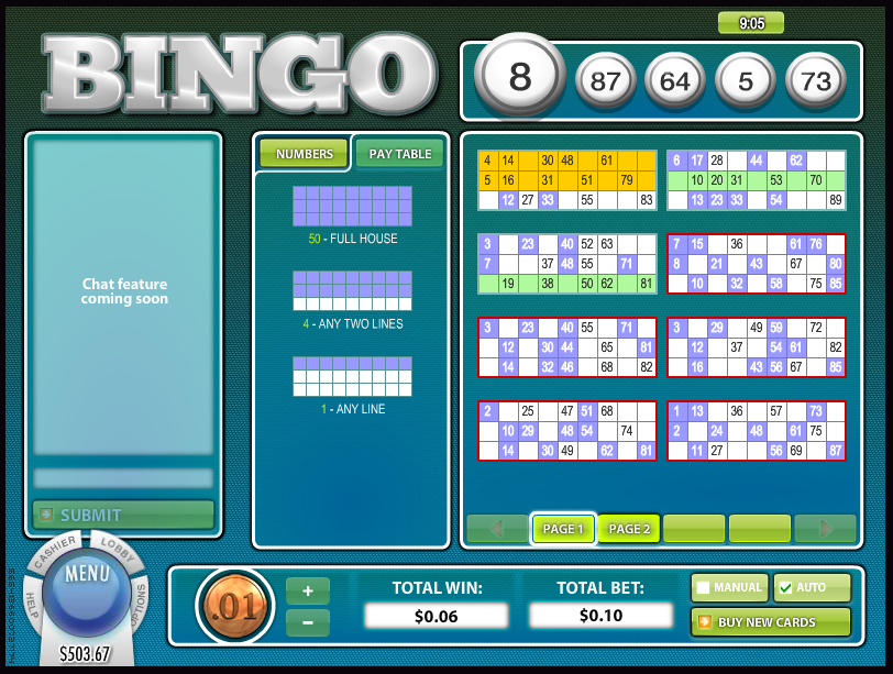 90 अंकों का यह खेल नौ स्तंभों और तीन पंक्तियों वाले कार्ड पर खेला जाता है। प्रत्येक पंक्ति में पाँच अंक होते हैं। जीतने के तीन अलग-अलग तरीके हैं, पहली, दूसरी या तीसरी पंक्तियों को कवर करने के लिए। प्रत्येक कार्ड पर, केवल सबसे बड़ी जीत का भुगतान किया जाता है। खिलाड़ी 45, 55 या 65 अंक निकालने का विकल्प चुन सकता है। जितनी कम गेंदें होंगी, खिलाड़ी के जीतने की संभावना उतनी ही अधिक होगी।