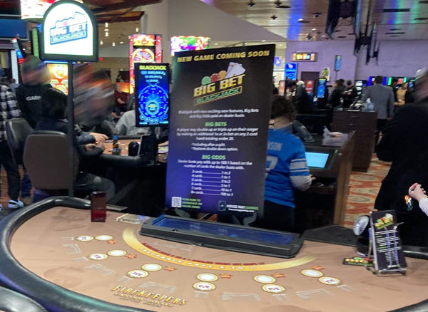 बिग बेट ब्लैकजैक, ब्लैकजैक का एक प्रकार है जो खिलाड़ी को अपने कार्ड देखने के बाद अतिरिक्त दांव लगाने की सुविधा देता है। इसे मिशिगन के बैटल क्रीक स्थित फायरकीपर्स कैसीनो में खेला जा सकता है।